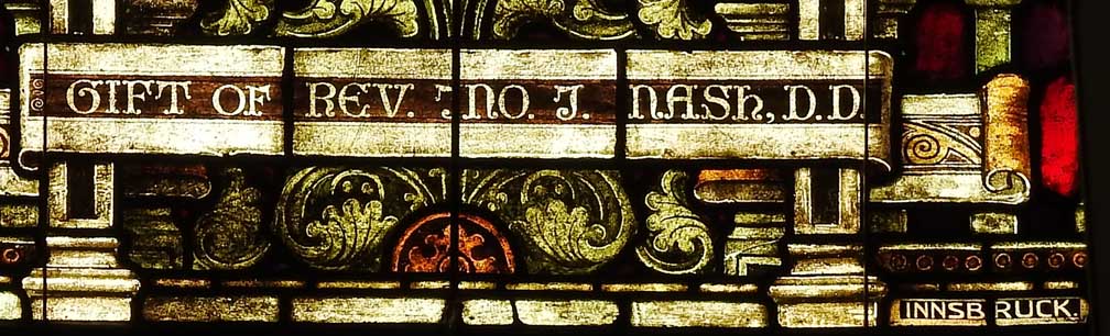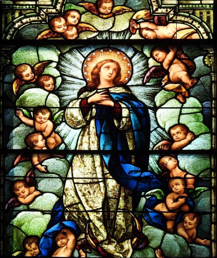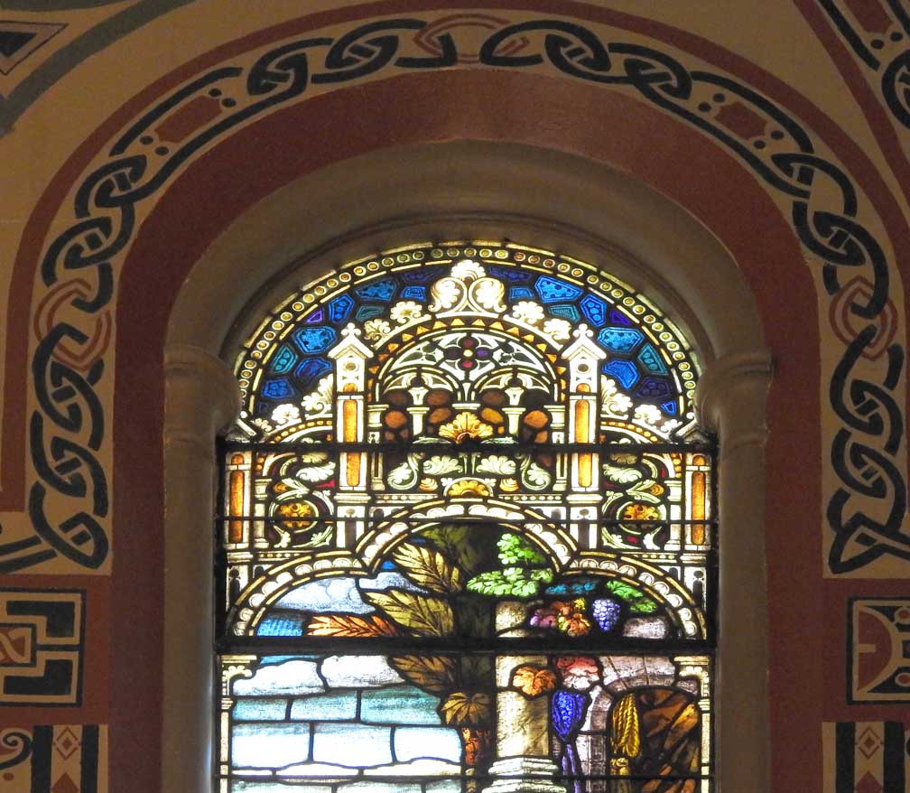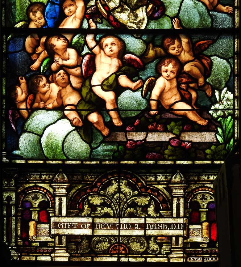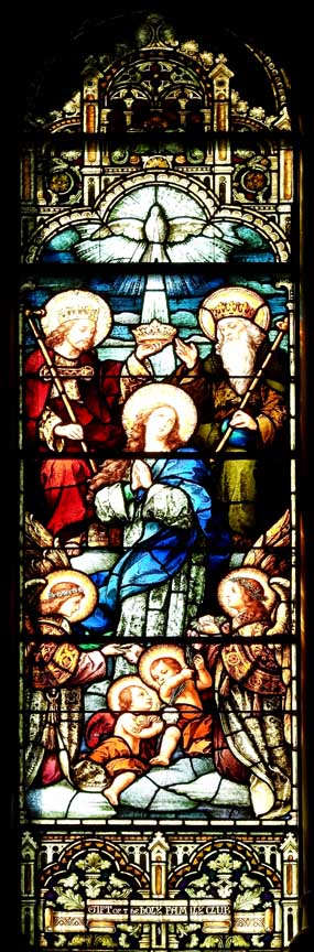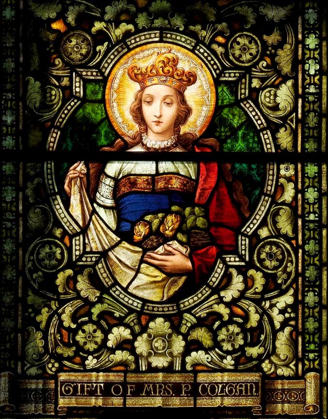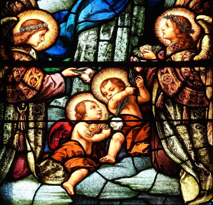 South Transept![]() All female saints ... Details below: ![]() Annunciation ... Two details below: ![]() Annunciation - Detail #1 ... God the Father ... Dove/Holy Spirit ... Angel Gabriel ![]() Annunciation - Detail #2 ... Lilies are symbolic of Mary and Joseph's purity ![]() Nativity ... Two details below: ![]() Nativity - Detail #1 ... "Glory to God in the Highest" ![]() Nativity - Detail #2 ![]() Visitation - Detail ![]() Visitation - Detail #1 ... Note Celtic-decorated arch ... Each color of the stenciled architectural scene is separately fired in a kiln ... An architectural surround is a hallmark of Munich Pictorial style ![]() Visitation - Detail #2 ... Saints: Joseph ... Joachim ... Mary ... Elizabeth ![]() St. Margaret of Corona ... St. Margaret (1247-1297 - Italian of the Third Order of St. Francis. A willful girl who became the mistress of the son of Guglieromo de Pecora-Lord of Valiano and bears him a son. She and her son will join Franciscan orders and she is the patron saint of the falsely accused, hobos, homeless, mentally ill, orphaned, step children, single mothers, prostitutes, and tramps ... Detail below: ![]() St. Margaret of Corona - Detail: Lash like that used in Christ's scourging ![]() St. Jane de Chantel ... St. Jane (1572-1641 - Daughter of a Royalist president of the parliament of Burgundy. She marries, had 4 children, and when her husband died, she ran his estate and eventually started her own religious order - Order of the Visitation of Mary that took in old and poor women. She is the patron saint of forgotten people, widows, and parents separated from their children. ... Detail below: ![]() St. Jane de Chantel - Detail ![]() Saint Rose of Lima ... Note roses around her head ... Detail below: ![]() Saint Rose of Lima - Detail |