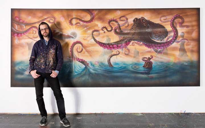 hand-painted assemblages. Brammer’s murals also veer into fantastic