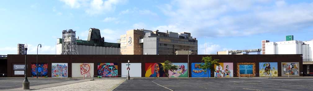 | Other NFTA and Albright-Knox collaboratives: the Allen-Medical Campus subway station and the "Freedom Wall" at its Cold Spring bus garage. |