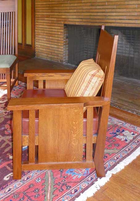 room![]() 2002 photo - Living room ![]() 2002 photo - Living room Living room built-in oak bookcase - a typical Craftsman feature ... On the other side of the bookcase and grille, to the right, is the stairway to the second floor. ![]() 2002 photo - Living room Living room looking out to Summit Ave. ![]() 2002 photo - Living room ![]() 2010 photo - Living room ![]() 2010 photo - Living room. Living room fireplace: Green plaster has the color mixed in the plaster covered with a slightly different color glaze ... Oak trim ... Roman bricks are identical to those used on the exterior ![]() 2010 photo - Living room. Oak Park Spindle Box Chair ![]() ![]() 2010 photo - Living room. Oak Park Spindle Box Chair ![]() 2010 photo - Living room. Oak Park Spindle Box Chair - with cushion, also available for sale in the Martin House Complex Wisteria Museum Gift Shop ![]() 2010 photo - Living room. Oak Park Spindle Love Seat - with cushion which is also available for sale in the Martin House Complex Wisteria Museum Gift Shop ![]() 2010 photo - Living room. Oak Park Spindle Love Seat ![]() 2010 photo - Living room. Dana Thomas Occasional Chairs ![]() Heath House ![]() 2010 photo - Living room. Boynton Compound Curve Side Chair ... The chair is "curved in two different directions, to support the lumbar area and to cradle the shoulders - a radically different design from the flat-back shape of most of the Prairie-era chairs." - Julie Scelfo ![]() ![]() 2010 photo - Living room. Boynton Compound Curve Side Chair ![]() 2010 photo - Living room. Boynton Hall Table ![]() 2010 photo - Living room. Boynton Hall Table ![]() 2010 photo - Living room. Dana-Thomas Plant Stand ![]() 2010 photo - Living room. Dana-Thomas Plant Stand - with vase which is also available for sale in the Martin House Complex Wisteria Museum Gift Shop |