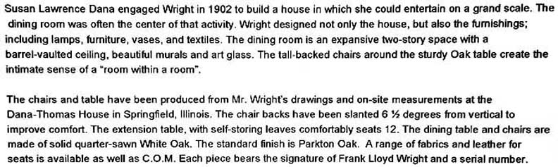 room![]() 2002 photo - Dining room Dining room oak buffet designed by Wright for the house. ![]() 2002 photo - Dining room ![]() 2010 photo - Dining room. Dana-Thomas dining room furniture - with vase which is also available for sale in the Martin House Complex Wisteria Museum Gift Shop