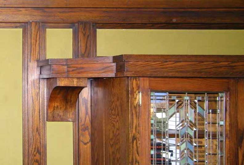 ![]() 2010 photo - Dining room. Dana-Thomas dining room furniture ![]() 2010 photo - Dining room. Dana-Thomas dining room furniture ![]() 2010 photo - Dining room. Dana-Thomas dining room chair ... Green plaster has the color mixed in the plaster and covered with a slightly different color glaze ![]() ![]() 2010 photo - Dining room. Dana-Thomas dining room chair ![]() 2010 photo - Dining room. Dining room buffet: 2 pairs of art glass doors set back from a central chest unit ... Dana-Thomas dining room table and chairs and with vase which is also available for sale in the Martin House Complex Wisteria Museum Gift Shop ![]() 2010 photo - Dining room. (Arts & Crafts style/Mission style) Wright-designed Dana-Thomas dining room oak buffet: a pair of end cabinets with art glass doors set back from a central chest unit ![]() 2010 photo - Dining room. ![]() 2010 photo - Dining room. ![]() 2010 photo - Dining room. Background: hall and living room oak woodwork ... Built in dining room oak bookcase with art glass doors featuring square and chrevron shapes ... Green plaster has the color mixed in the plaster covered with a slightly different color glaze ![]() 2010 photo - Dining room. "Light screen" stained glass window (detail below) echos the art glass doors of the dining room oak bookcase and buffet end cabinets Brass wall sconce with iridescent art glass ![]() 2010 photo - Dining room. ![]() 2010 photo - Dining room. Brass wall sconce with iridescent art glass. ... Note geometric brass pattern on sconce echoing the design on the light screen in previous illustration. |