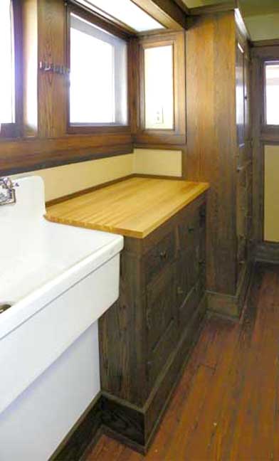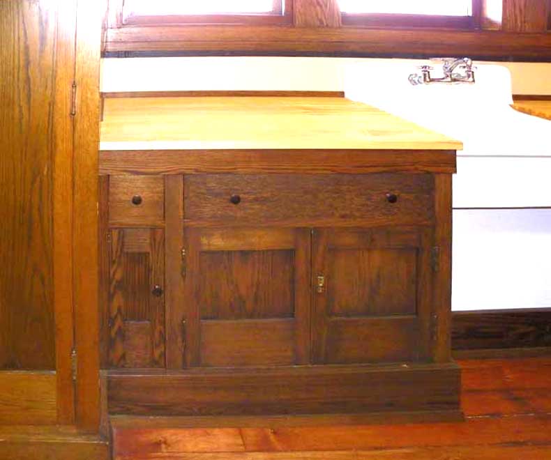 The new sink is period-appropriate, but not original. The newly constructed island is temporary, and will remain until the Barton House is restored and will be replaced with a period-appropriate stove by a previous owner. The new sink is period-appropriate, but not original. The newly constructed island is temporary, and will remain until the Barton House is restored and will be replaced with a period-appropriate stove. ![]() 2010 photo - Kitchen. Oak window surrounds and cabinetry ...The new sink is period-appropriate, but not original. ... The tall pantry cupboards are original. The base cabinets are original. ... The small, thin cabinets immediately next to the tall pantry cupboards were reproduced to the original drawings. ![]() 2010 photo - Kitchen. Some of the cabinets had been moved to an upstairs bedroom by a previous owner. In 2009 they were returned to the kitchen. ... The tall pantry cupboards are original ... The base cabinets are original ... The small, thin cabinets immediately next to the tall pantry cupboards were reproduced to the original drawings. ![]() 2010 photo - Kitchen. The new sink is period-appropriate, but not original ![]() 2010 photo - Kitchen. The newly constructed island is temporary, will remain until the Barton House is restored and will be replaced with a period-appropriate stove. ... The tall pantry cupboards are original ... The base cabinets are original ... The small, thin cabinets immediately next to the tall pantry cupboards were reproduced to the original drawings. ![]() 2010 photo - Kitchen. Some of the cabinets had been moved to an upstairs bedroom (2002 photo) by a previous owner. In 2009 they were returned to the kitchen.cabinet tops/drain boards were reproduced from original drawings ![]() 2010 photo - Kitchen. Some of the cabinets had been moved to an upstairs bedroom by a previous owner. In 2009 they were returned to the kitchen ![]() 2010 photo - Kitchen. One of the two tall end cabinets, both of which are original |