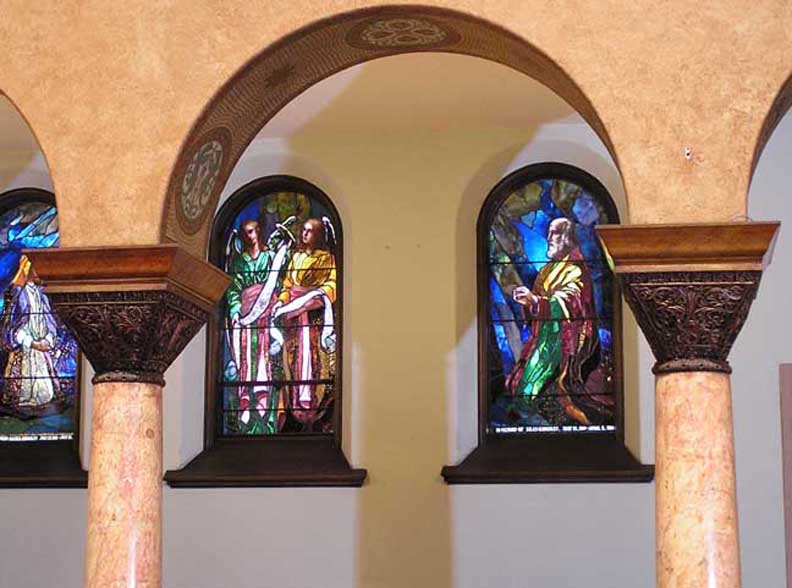 Studios: Mary Tillinghast Year installed: 1894 (Building erected 1889-91) Style: Opalescent with painted body parts.