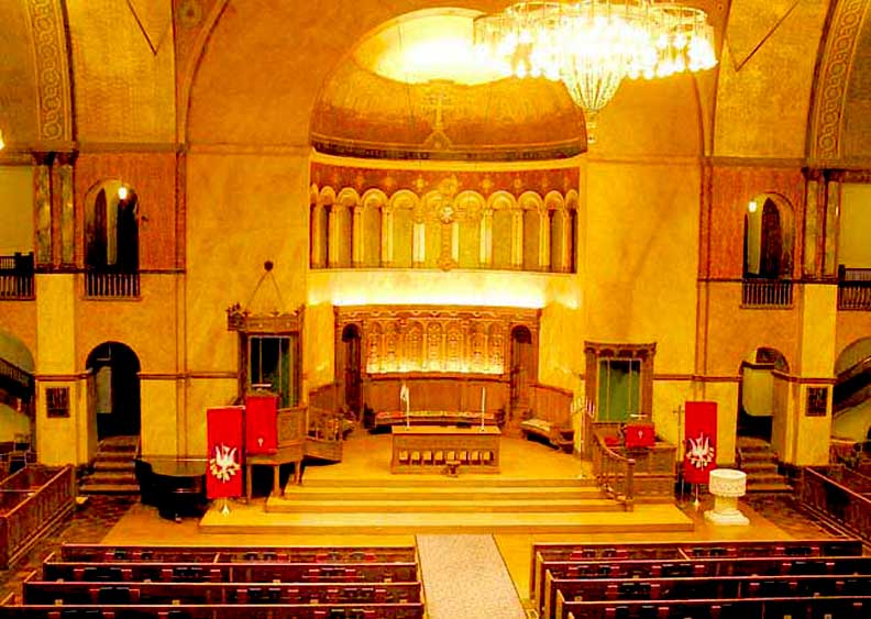 Exterior - Richardsonian Romanesque Interior - Byzantine Revival |