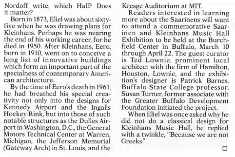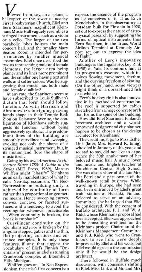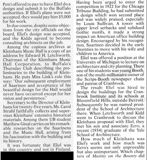 Kleinhans Music Hall - Table of Contents ............................... Eliel and Eero Saarinen - Table of Contents