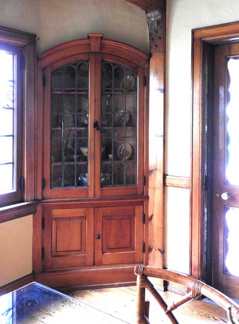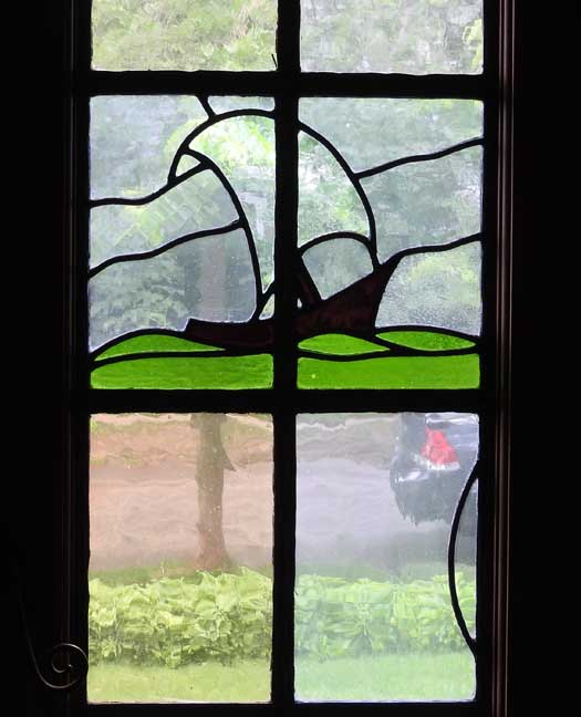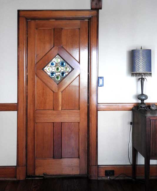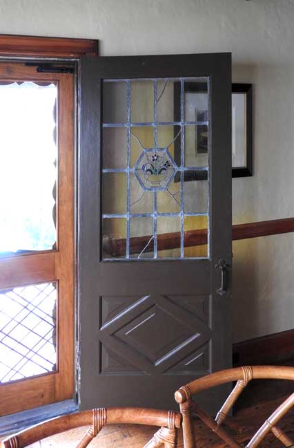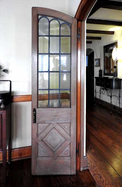 door to the patio has matching leaded glass windows, a design that is