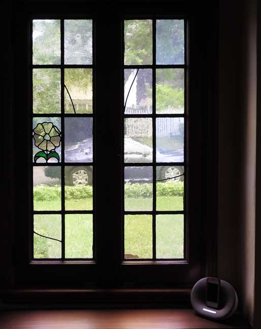 leaded glass casements. Each is made with wide lead cames, divided into