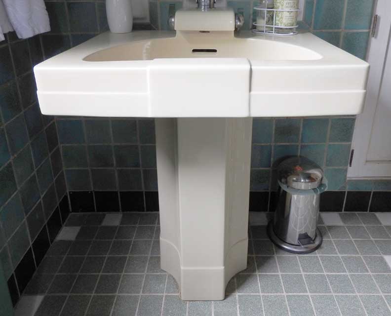 look of the late 1930s. The rectangular sink top was perched on a china