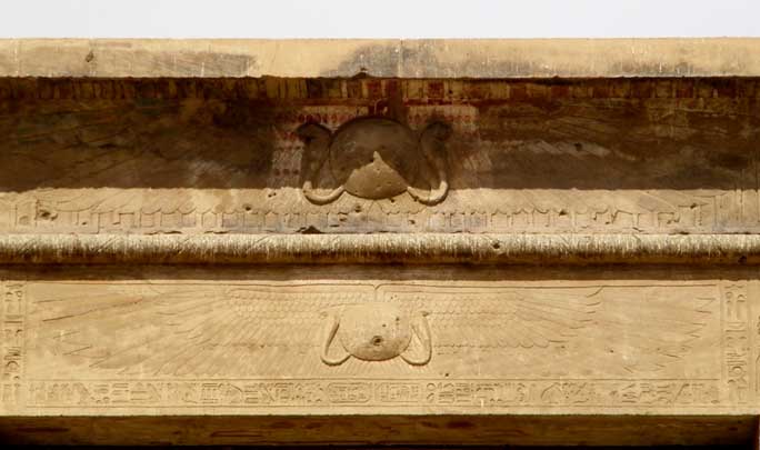 Solar(Sun) disk flanked by 2 cobras and outspread wings
