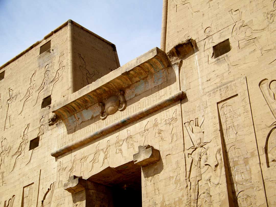 solar disk flanked by 2 cobras and vulture with outspread wings