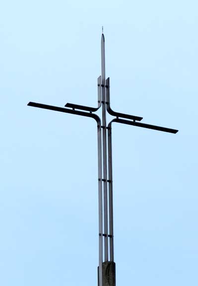 The sweeping curves of the structure are meant to evoke both the flames of the pyre on which the Saint was burnt
