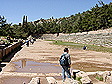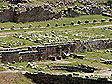The magnificent entrance to the stadium was on its east side and was three-apsed. Only the lower part stands today. The track is 177.55 m. long and 25.50 m. wide. There are 12 tiers of seats on the north side and 6 in the semicircular curved end and on the south side. The stadium is estimated to have held some 7,000 spectators and it was here that, from the 5th century onwards, the athletic events in the great panhellenic festival of the Pythian games took place.
