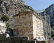 The temple of Apollo is the the most significant and sacred building in the Delphic sanctuary, the Poros stone and gray limestone were the principal building materials. The sculptures of the pediments were the work of the Athenians Praxias and Androsthenes. Only the wonderful figure of Dionysos is preserved (in the museum).