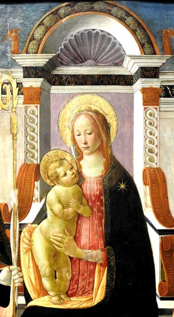 ![]() ![]() Filippo Lippi ... Renaissance style ... Two details below: ![]() "Adoration of the Christ Child" - Detail #1 God the Father depicted as a pair of hands .. The Holy Spirit depicted as a dove ![]() "Adoration of the Christ Child" - Detail #2 Jesus ... St. Romuald |