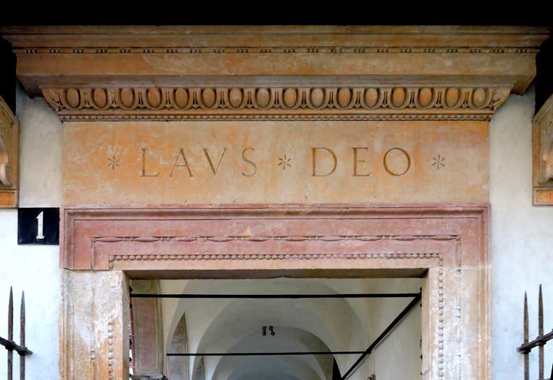 ![]() Renaissance style exterior ... Built 1463-69 ... Guiniforte Solari, architect ... Duke of Milan Francesco I Sforza ordered the project ![]() Lantern ... Arcade ![]() ![]() ![]() "Laus Deo" = Praise be to God ... Bead-and-reel molding near top ... Egg-and-dart molding over the frieze ![]() Cloister - a covered walk in a convent, monastery, college, or cathedral, typically with a wall on one side and a colonnade open to a quadrangle on the other ![]() Roman Corinthian capital and partial shaft ![]() ![]() |