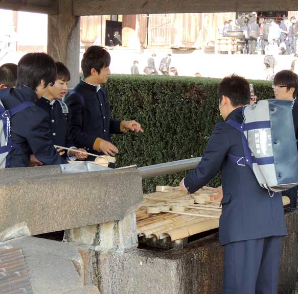 In Front of the Great Buddha Hall![]() Bronze octagonal lantern Tower (8th century). Four details below: ![]() Octagonal bronze Lantern Tower (8th century) - #1 of four details ![]() Octagonal bronze Lantern Tower (8th century) - #2 of four details ![]() Octagonal bronze Lantern Tower (8th century) - #3 of four details ![]() Octagonal bronze Lantern Tower (8th century) - #4 of four details ![]() Temizu - water ablution pavilion for a ceremonial purification rite known as temizu. ![]() Boys lighting incense sticks |