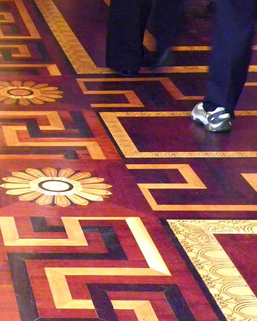 | St George (Large Throne) Hall of the Winter Palace "The St George (Large Throne) Hall in the Winter Palace was created in the early 1840s by Vasily Stasov who followed the compositional approach of his predecessor, Giacomo Quarenghi. The columned hall with two tiers of windows is finished with Carrara marble and ormolu. "The great imperial throne was made in London to a commission from Empress Anna Ioannovna (by Nicholas Clausen, 1731-32). The hall has a magnificent parquet floor made from 16 varieties of wood. The grand decor of the hall accords with its function as the setting for official ceremonies and receptions." - Hermitage Official Website ![]() Rococo style ![]() ![]() Coffered ceiling ![]() ![]() Gilded balustrade ![]() ![]() The great imperial throne was made in London to a commission from Empress Anna Ioannovna (by Nicholas Clausen, 1731-32). ![]() The hall has a magnificent parquet floor made from 16 varieties of wood. ![]() |
