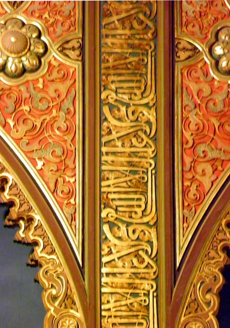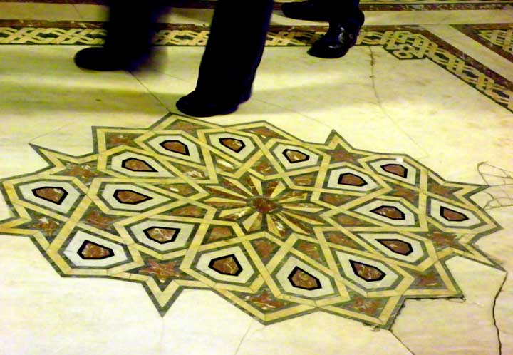 ![]() Details below: ![]() Coffered ceiling ![]() Arch decorated with plaster stalactites ![]() Calligraphy ![]() Floor |