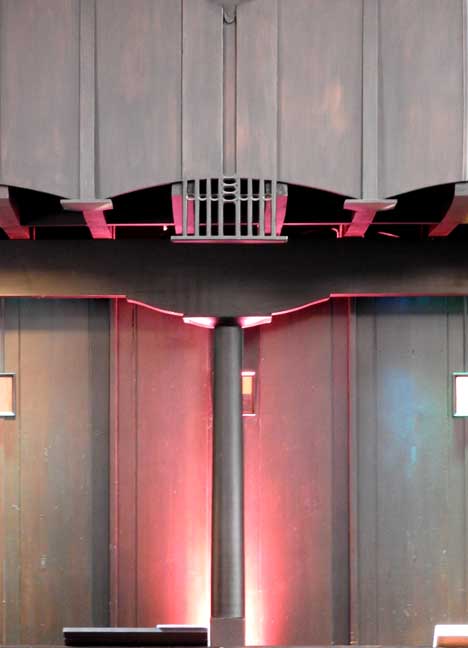 ![]() View towards entrance from altar ![]() ![]() ![]() ![]() ![]() Ceiling below organ loft ... Detail below: ![]() |