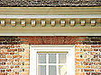 - Masonry features Flemish bond brickwork with rubbed jambs, corners, and water table, and gauged-brick belt course and splayed brick arches