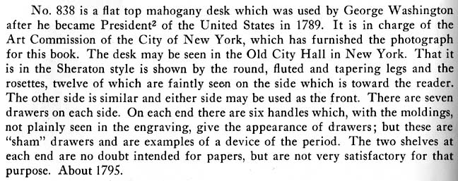Thomas Sheraton "George Washington Desk" Text and photo are reprinted from Edgar G. Miller, Jr., American Antique Furniture, 1937, Vol. 2, p. 455 See also: Kittinger Company reproduction