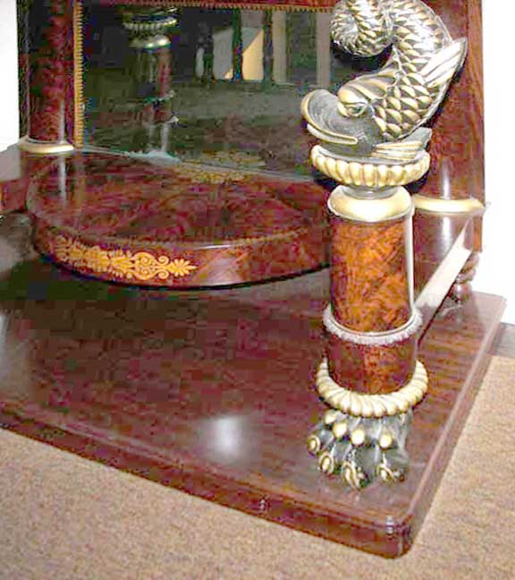 Engaged veneered columns flank the rear mirrored back ... Lion's paw front feet