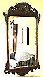 - Upward scrolling pediment centering a hollow reserve with giltwood phoenix flanked by scrolled