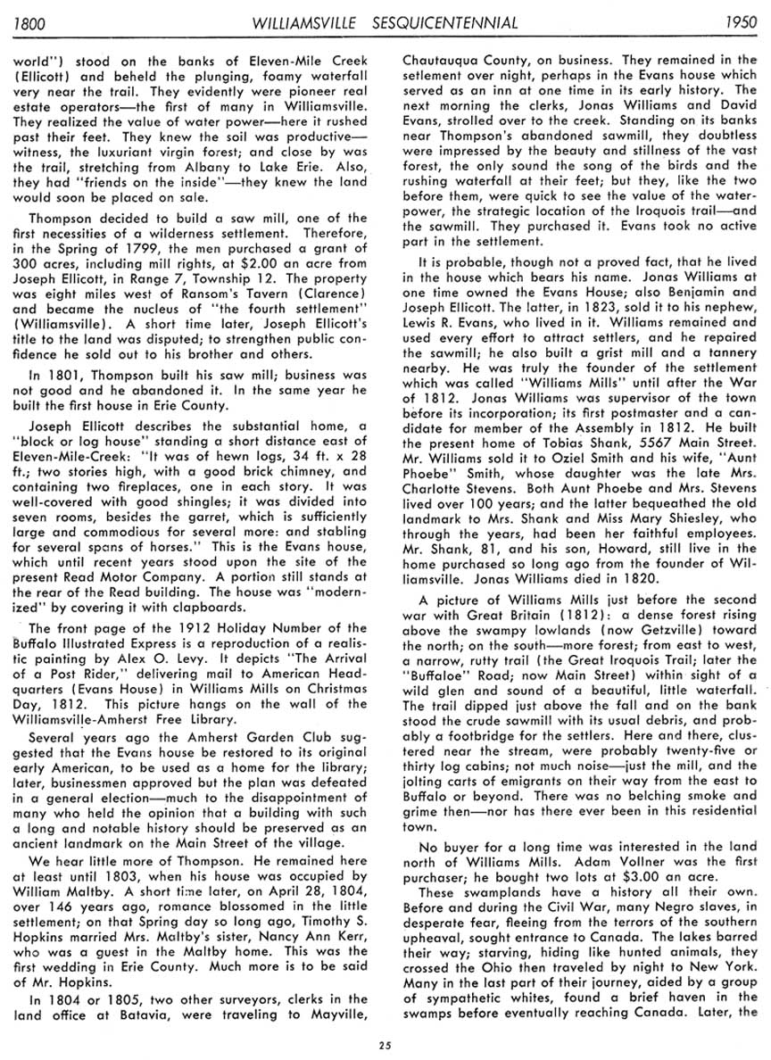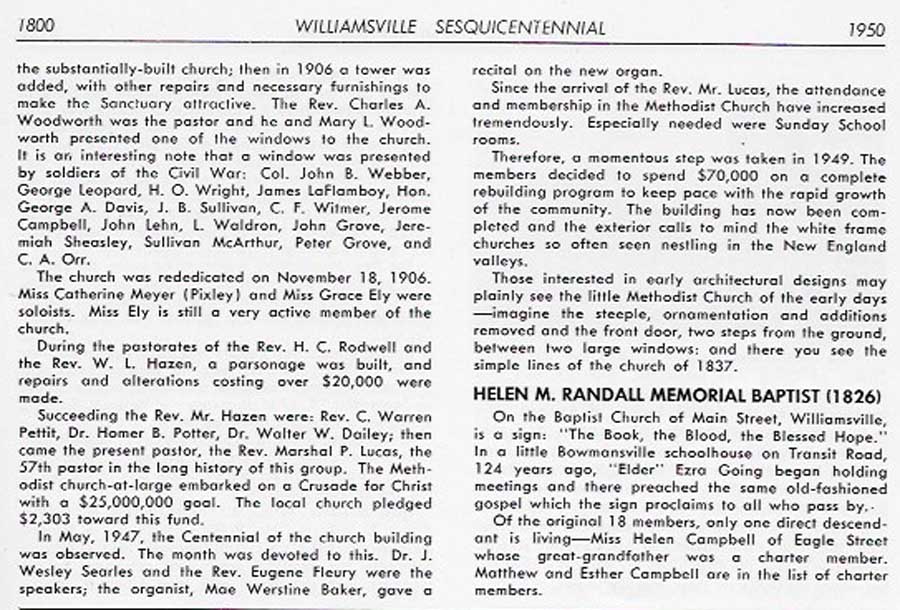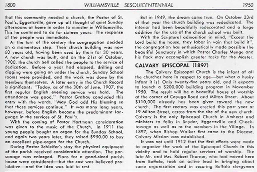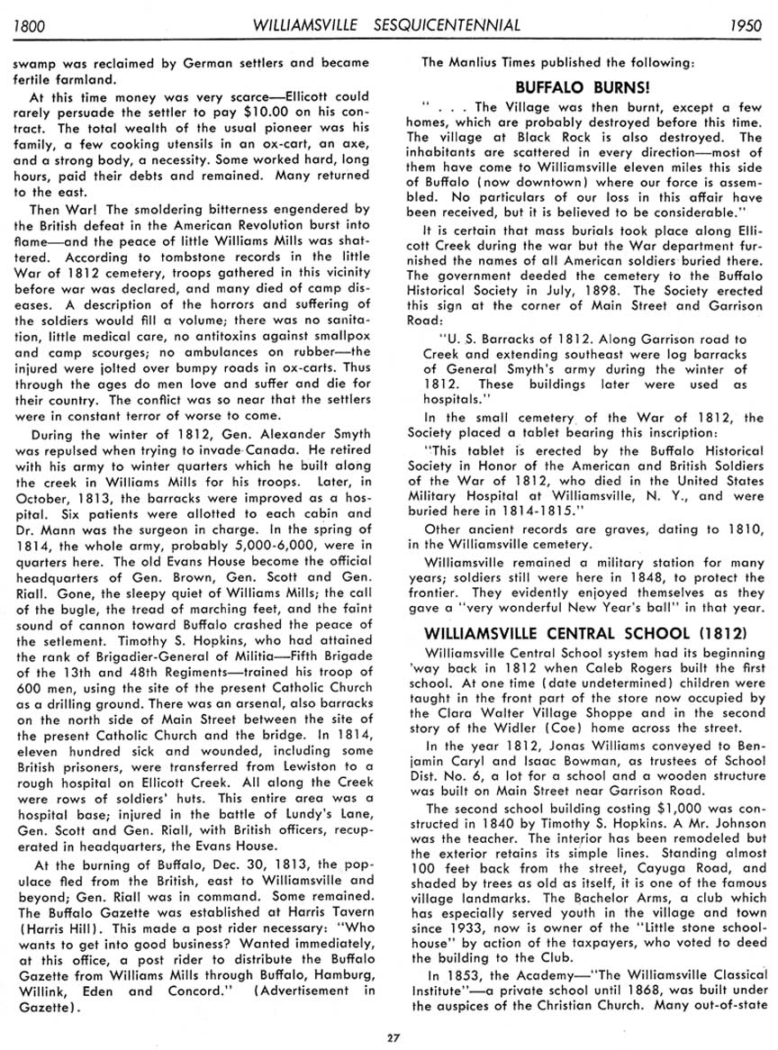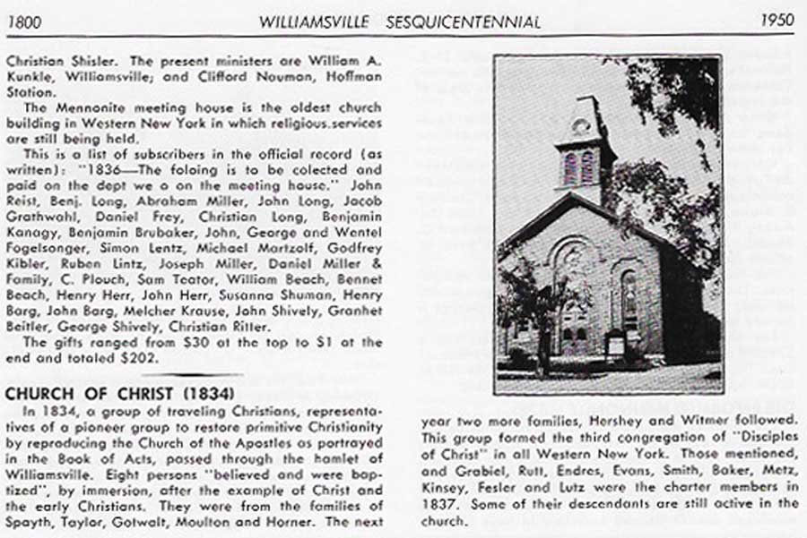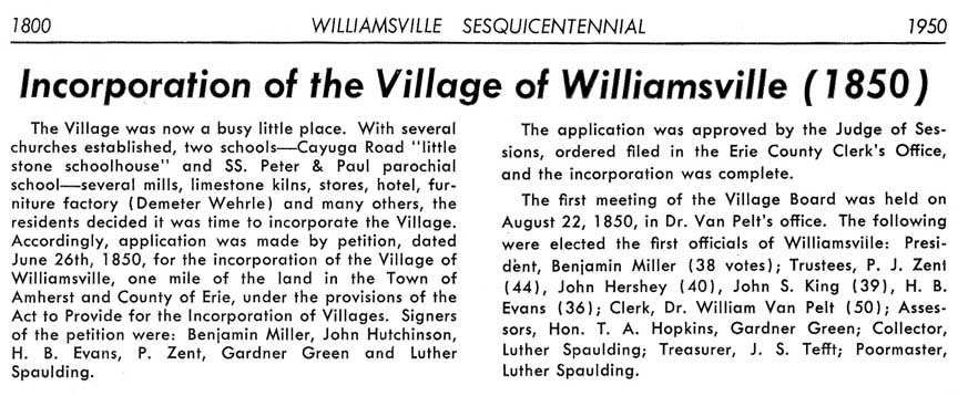 Special thanks to Harry Meyer for making his copy of the Williamsville Sesquicentennial booklet available for reprinting in 2018
