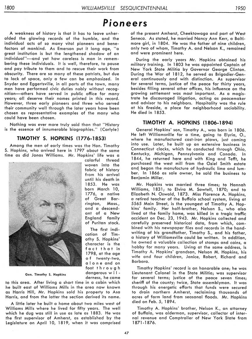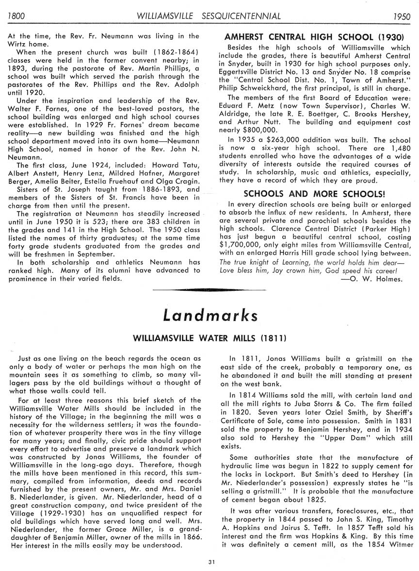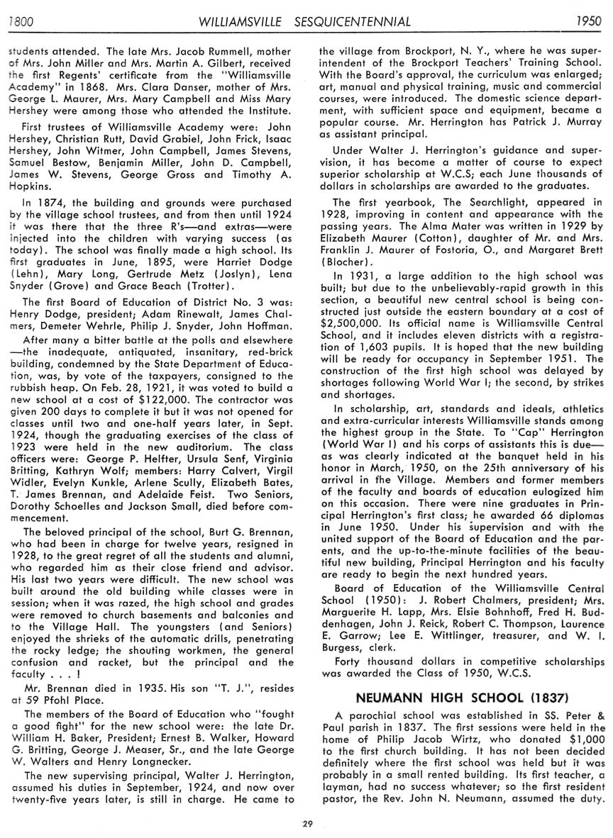 Special thanks to Harry Meyer for making his copy of the Williamsville Sesquicentennial booklet available for reprinting in 2018
