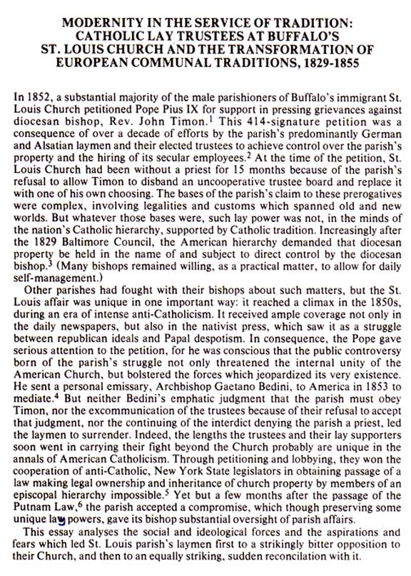 Service of Tradition: Catholic Trustees at Buffalo's St. Louis Church