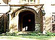Manifesting and sheltering the front door, this arched and buttressed gateway to