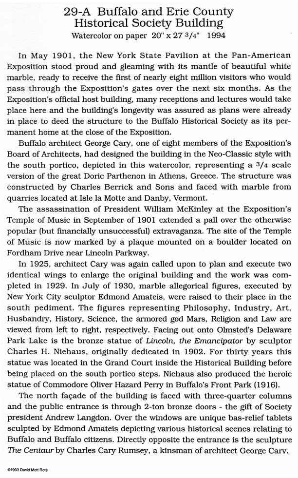 Buffalo and Erie County Historical Society Building / Buffalo History Museum Pan- American Exposition George Cary Neo-Classical style Portico Parthenon William McKinley Temple of Music Delaware Park Lake "Lincoln, the Emancipator" Perry statue "The Centaur"