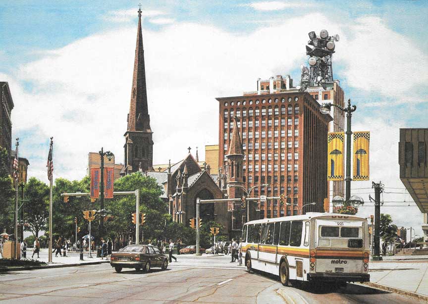 St. Paul's Episcopal Cathedral Gothic style Medina sandstone Steeple Guaranty Building Frank Lloyd Wright George Elmslie Telephone Building White Building Dun Building Main Place Mall Erie County Savings Bank