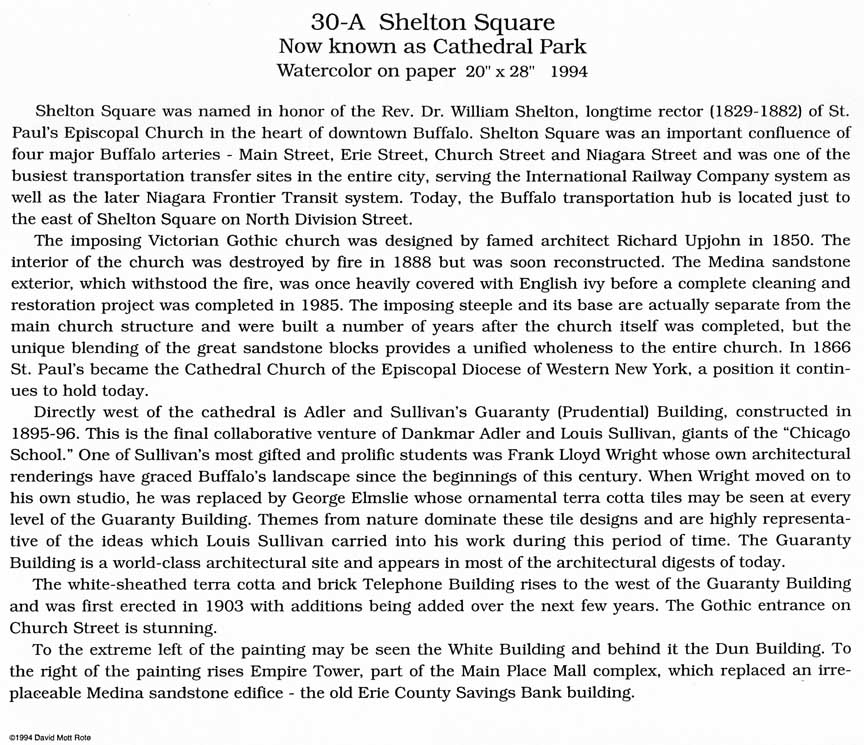 Links on Buffalo Architecture and History website: St. Paul's Episcopal Cathedral Gothic style Medina sandstone Steeple Guaranty Building Frank Lloyd Wright George Elmslie Telephone Building White Building Dun Building Main Place Mall Erie County Savings Bank