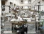 Frank Lloyd Wright designed the Larkin Administration Building, 680 Seneca Street, in 1904 to accommodate the 1800 corresponding secretaries, clerks, and executives. The Larkins needed a clean and comfortable building in order to attract first-rate (chiefly female) employees to an otherwise industrial section of the city. Wright's numerous innovations contributed significantly to this objective. Inside was a beautiful work setting, filled with natural light and fresh air. Clean air was distributed throughout the sealed interior of the building from a rudimentary air-conditioning system in the basement. Metal office furniture, built-in file cabinets, wall-hung toilets, and a gracious restaurant and conservatory all contributed to the ambiance of the building and were featured as part of daily factory tours.