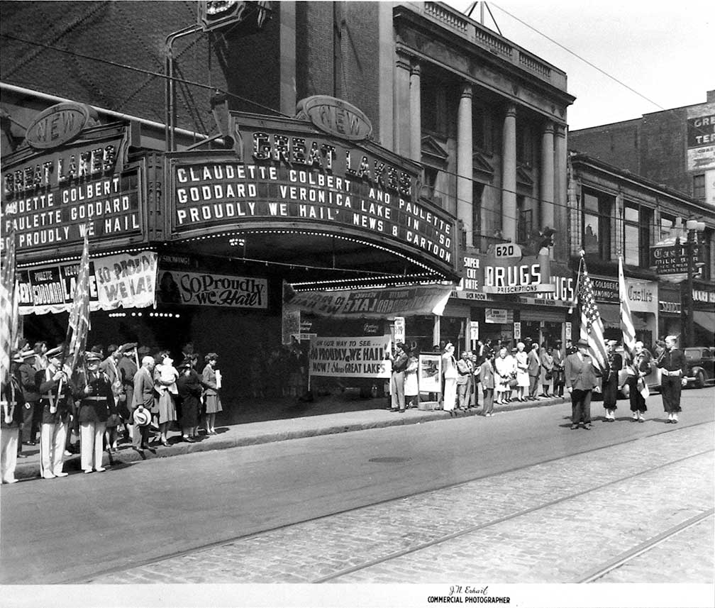 Great Lakes AKA Paramount (previous photo) Immediate right of Great Lakes: Dickinson Jewelry Store / Levy King & White Building