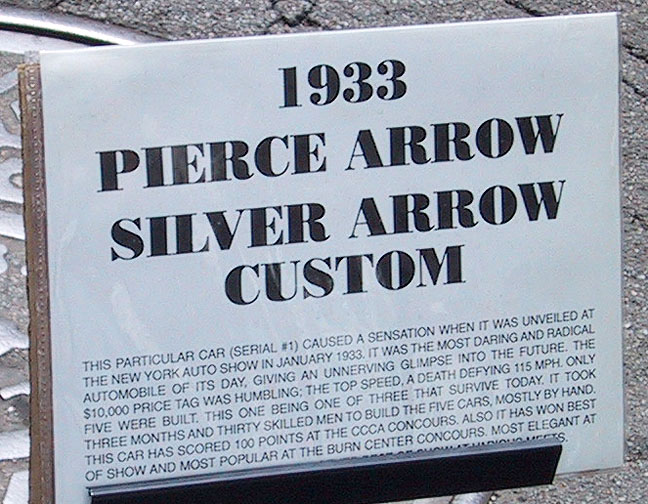 2001 Pierce-Arrow National Convention: Pierce-Arrow Silver Arrow Custom in the Pierce-Arrow Circle of Cars at Niagara Square, Buffalo, New York July 14, 2001